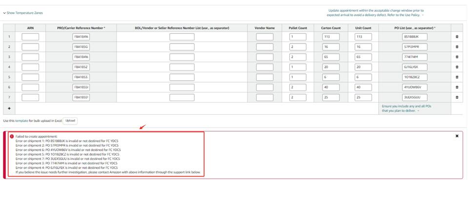 1.多倫多地區(qū):YHM1稍微爆倉,有拒收情況出現(xiàn),等時在2-3H;YGK1放約少,有拒收情況出現(xiàn)。爆倉倉庫預(yù)計(jì)派送時間在7-10天,新增YDC5—目前所有YDC5的PO# 無法預(yù)約(具體YDC5預(yù)約截圖已郵件發(fā)給到對應(yīng)客服),派送的貨物全部被拒收。經(jīng)過我司海外與YDC5亞馬遜內(nèi)部核實(shí),此倉庫暫時未對外放約,客人可以聯(lián)系亞馬遜進(jìn)行申訴換倉,已到倉的YDC5貨物,我司提供以下2種解決方案。