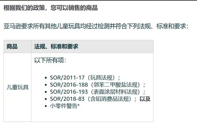 亞馬遜加拿大站玩具及部分母嬰產(chǎn)品要求
